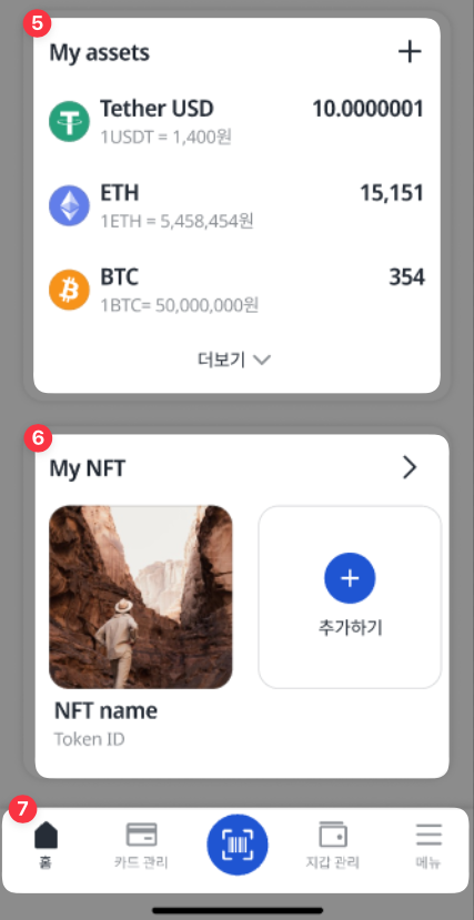 Thanh điều hướng: Nơi điều hướng nhanh tới các mục chính như Trang chủ, Quản lý thẻ, Thanh toán, Quản lý ví và Menu